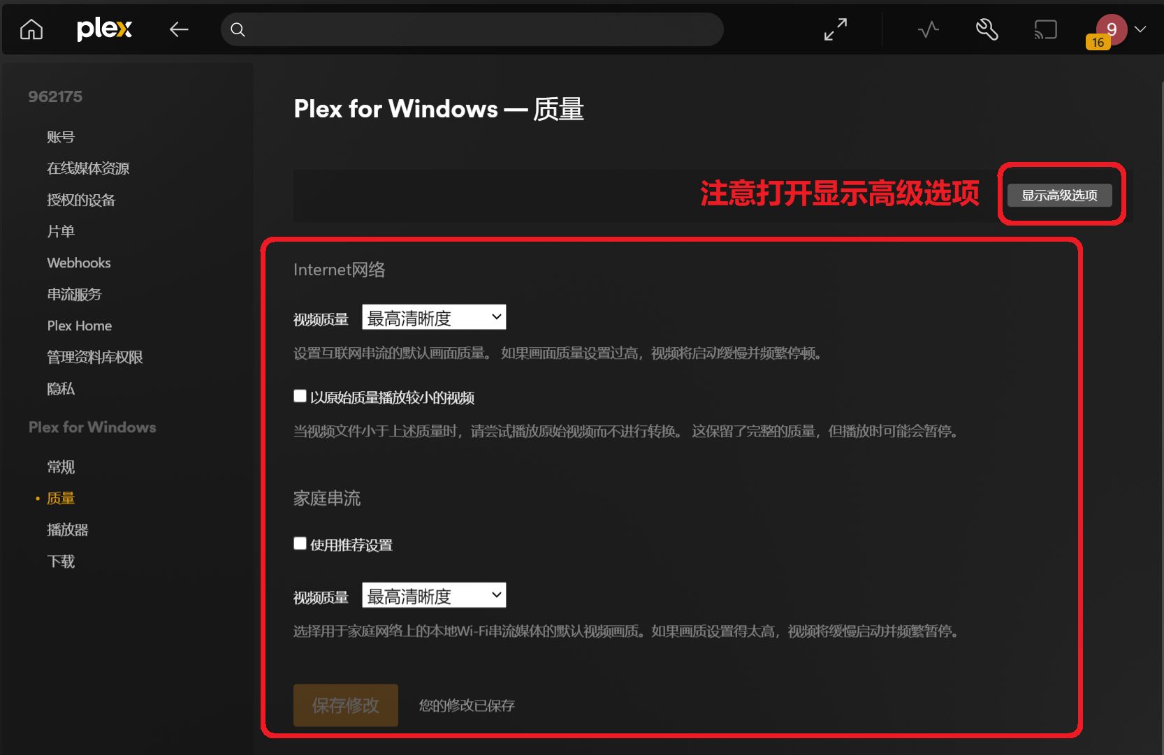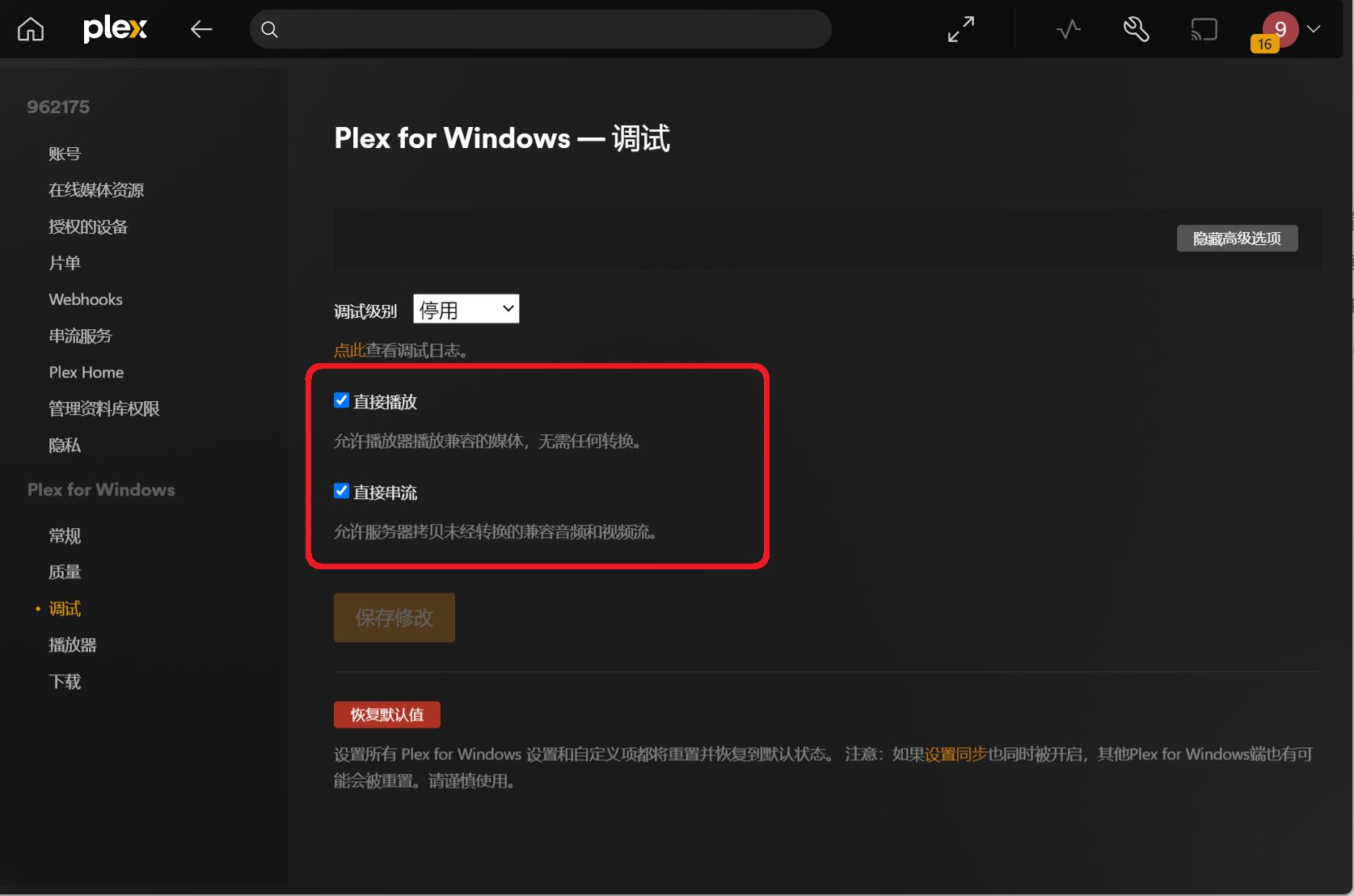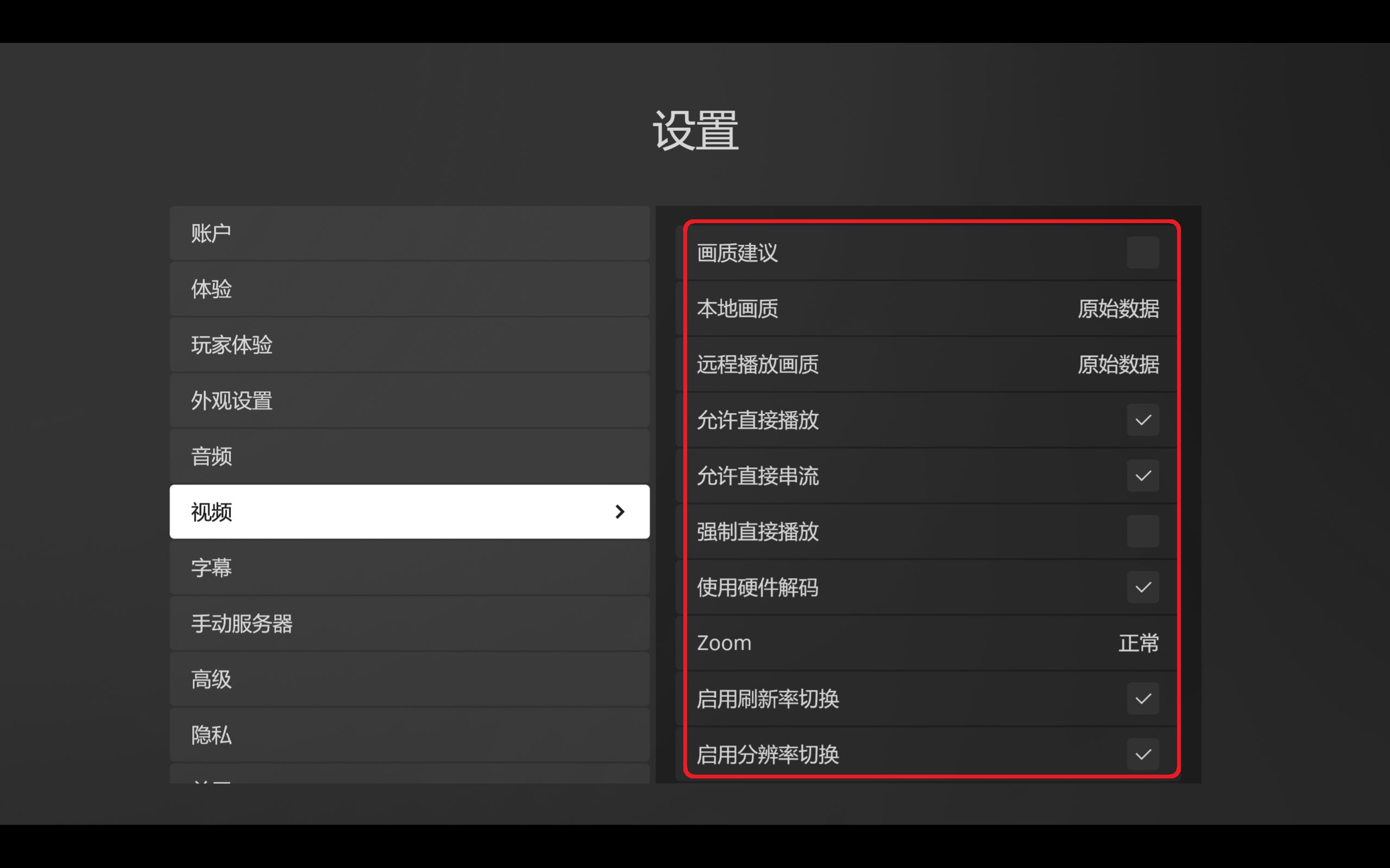 同 Plex 安卓端基本相同,可以参考设置,这里只给出一些特别的设置项