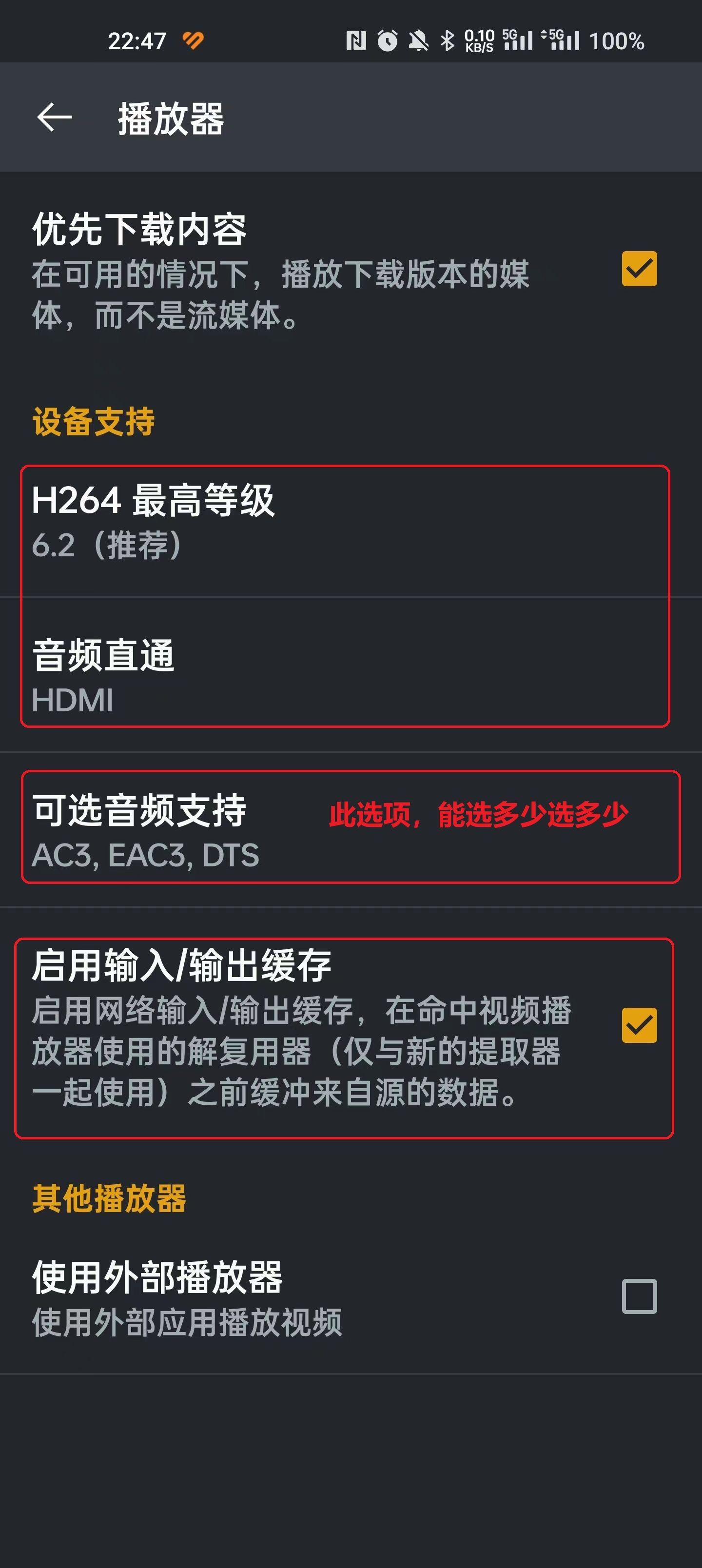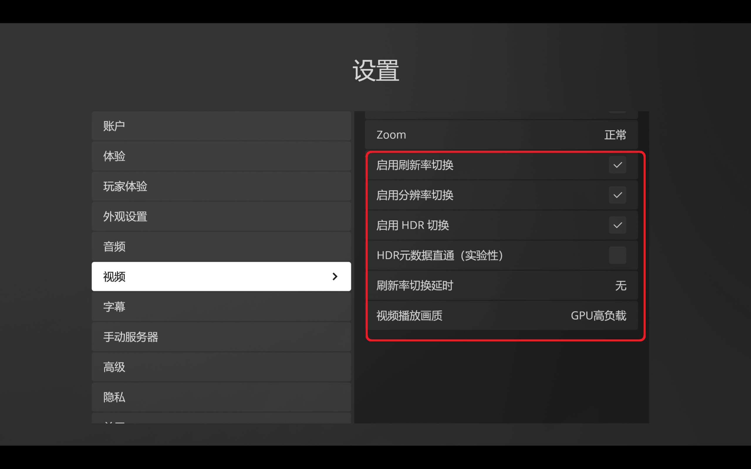 最后一张图的播放器设置:“设置”-> “高级”-> “播放器”